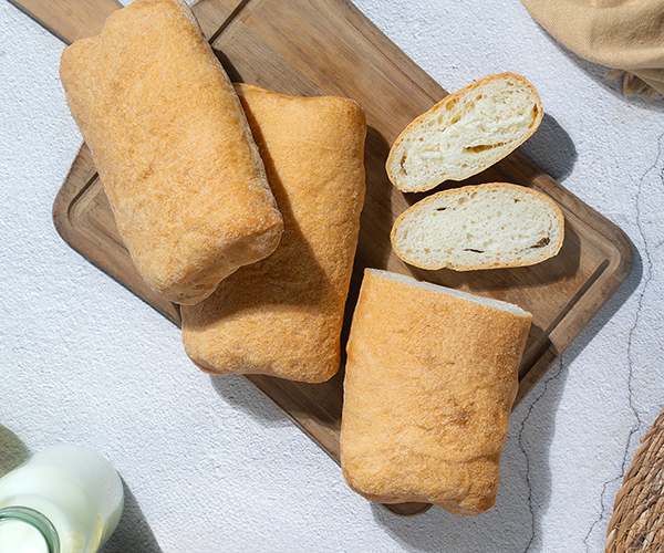 Made from high-hydration dough and strong flour, it has a mild, wheaty flavor and is ideal for sandwiches or as a table bread.